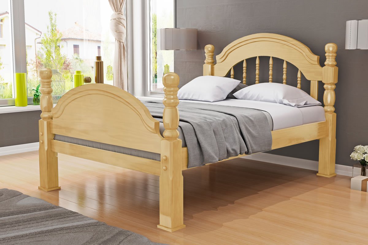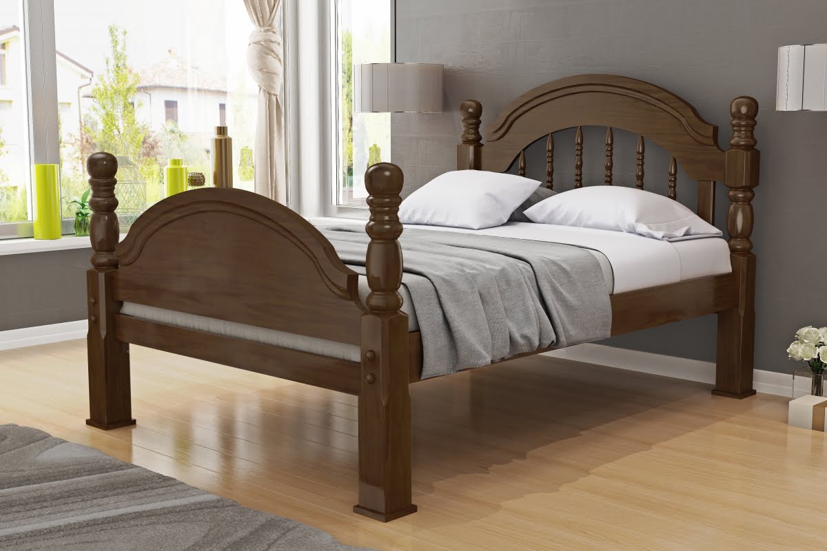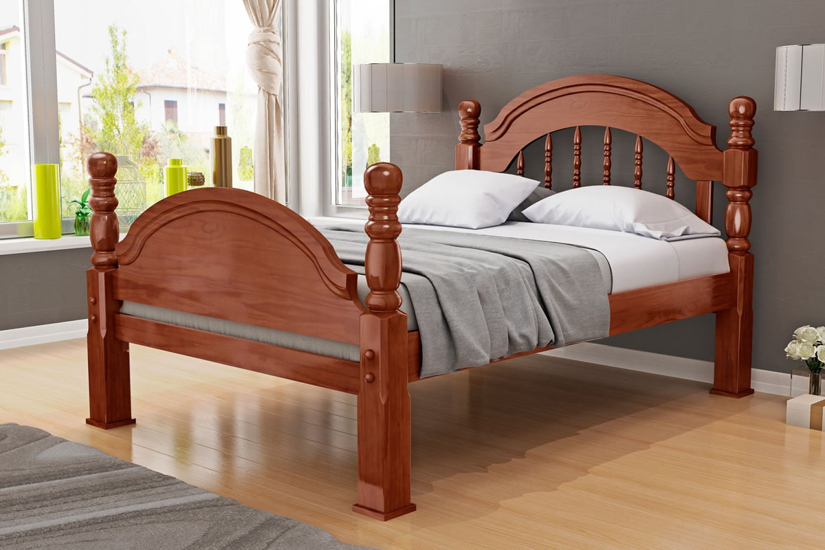 Cama de Casal Eliane Pezeira Baixa em Madeira Maciça de Pinus Taeda