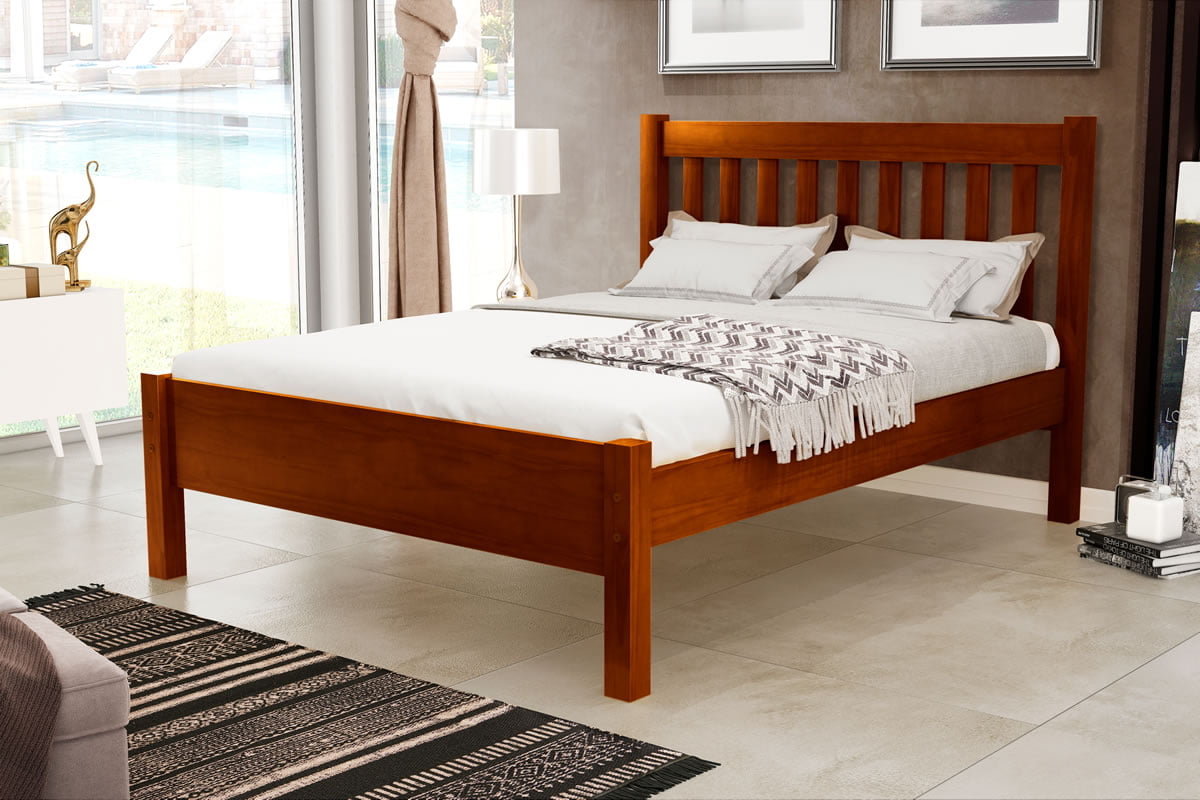 - Como posso cuidar da minha cama de madeira maciça? A limpeza com um pano seco ou levemente umedecido é recomendada, evitando produtos químicos agressivos para manter o acabamento perfeito.