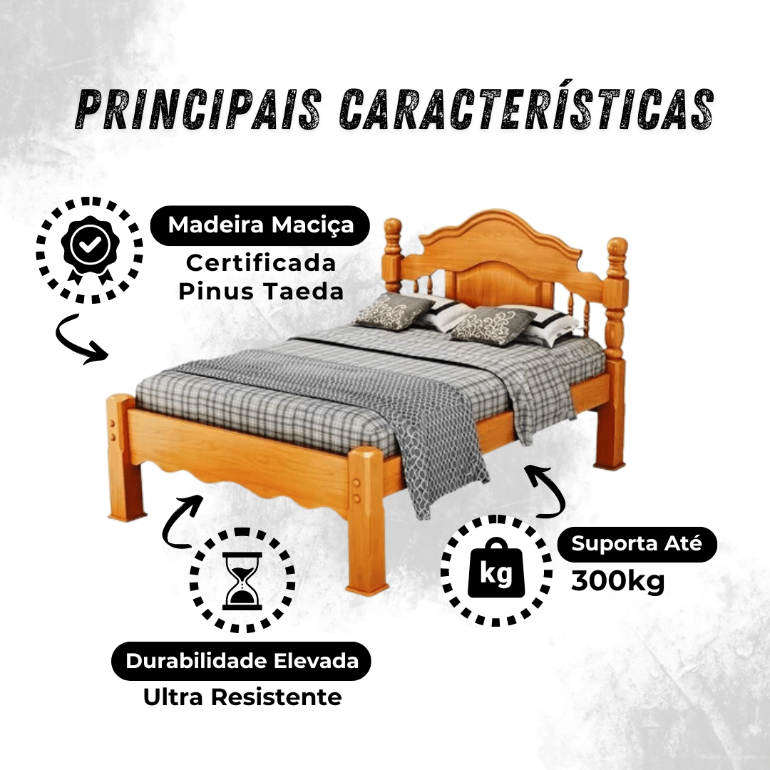- Como cuidar da cama de madeira maciça? Recomenda-se a limpeza com um pano seco ou levemente umedecido, evitando produtos químicos agressivos para preservar o acabamento.