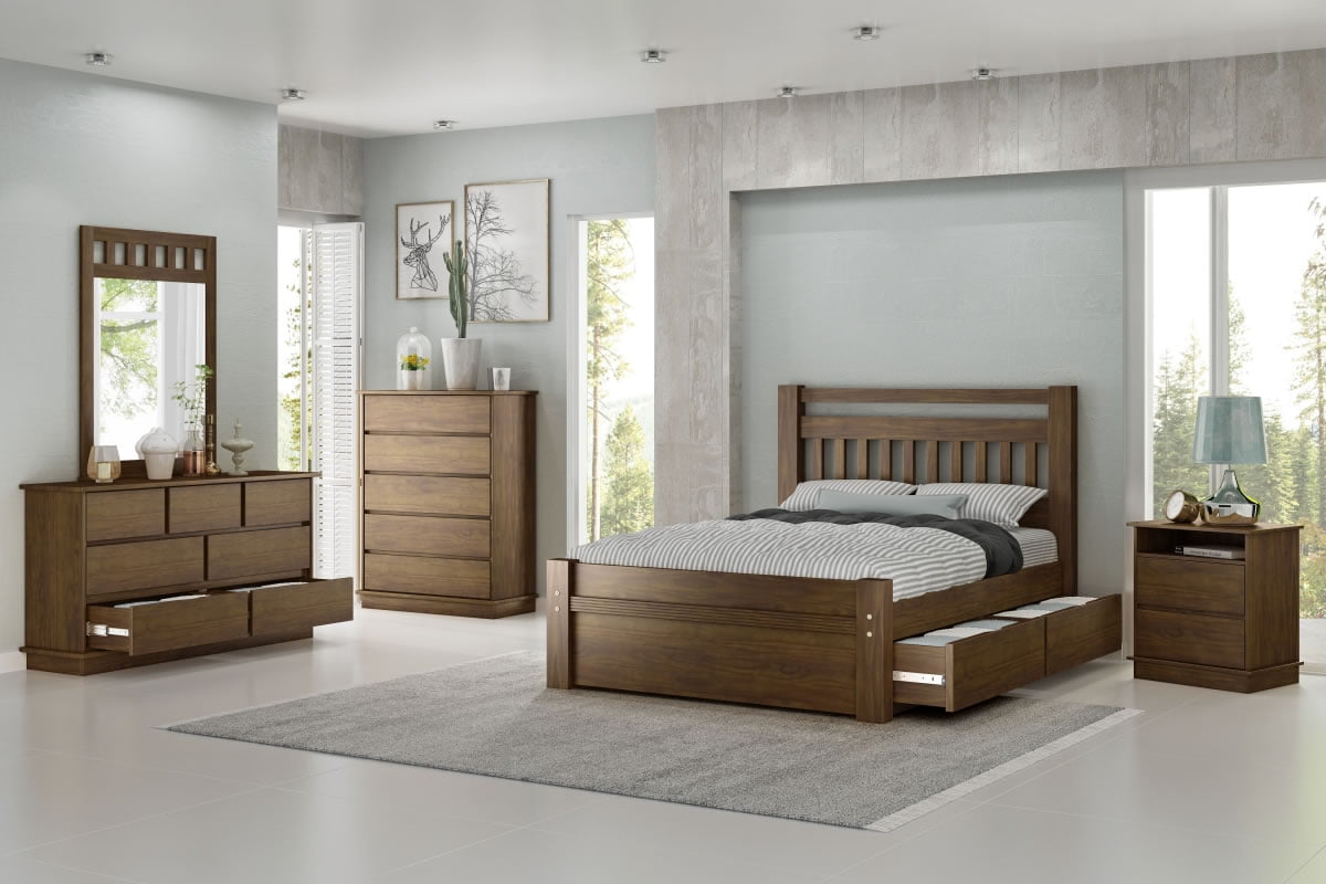 Descrição da Cama de Casal Orleans com 2 Gavetas Madeira Maciça Bedroom