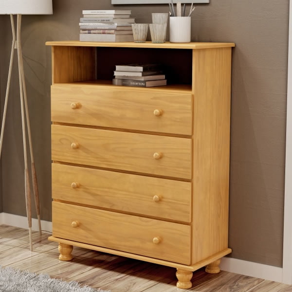 - Atualmente, a Cômoda com 4 Gavetas está disponível na cor apresentada no site, mas fique atento para futuras opções.