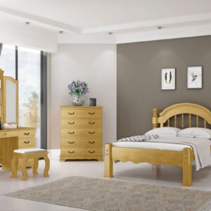 O conjunto do Dormitório Queen Size Eliane é composto por peças cuidadosamente selecionadas para criar um ambiente harmonioso e funcional. A cama queen size, com seu design robusto e acolhedor, é complementada por criados-mudos de fácil acesso, uma cômoda espaçosa para organização de vestuário e um guarda-roupa elegante, garantindo amplo espaço de armazenamento. Este dormitório é ideal para quem valoriza a combinação de design contemporâneo com a praticidade necessária para o dia a dia, oferecendo um espaço de descanso e relaxamento sem igual.