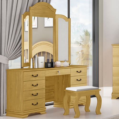 - Como posso limpar a penteadeira sem danificá-la? Recomendamos a limpeza com um pano macio e seco ou levemente umedecido com água, evitando o uso de produtos químicos agressivos.