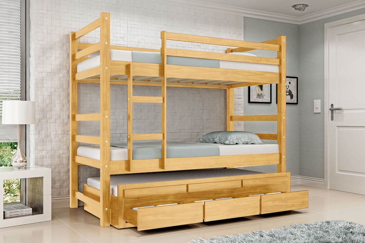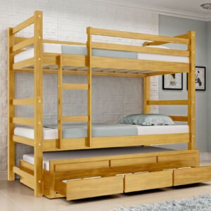 Desenvolvida pensando na otimização de espaços sem sacrificar o estilo ou a qualidade, a Treliche com 3 Gavetas Ágata é a solução ideal para quem precisa acomodar mais em áreas limitadas. Este móvel inteligente combina três camas confortáveis em uma estrutura compacta, com 3 gavetas espaçosas integradas, oferecendo amplo espaço de armazenamento para roupas, brinquedos ou itens pessoais. Fabricada em madeira maciça, garante durabilidade e resistência, enquanto o design atemporal se adapta perfeitamente a qualquer decoração de quarto, desde a mais moderna até a mais tradicional.